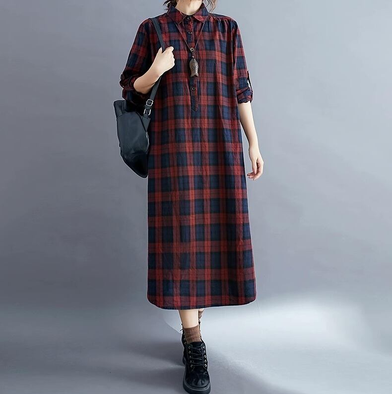 ワンピース レディース シャツワンピ ロング 長袖 Vネック 襟付き フェミニン ストリート かわいい 大人可愛い シンプル カジュアル おしゃれ レトロ こなれ感 ラブリー キュート 学生風 ベーシック カントリー アクティブ ナチュラル チェック 格子柄 タータンチェック 春 秋 学生 お出かけ お泊まり 女子会 休日 ショッピング カフェ 重ね着 コーデ 楽ちん 普段使い 着回し レイヤード モテ トレンド 流行 インスタ映え M L XL 2XL 小さいサイズ 大きいサイズ レッド 緑 グリーン