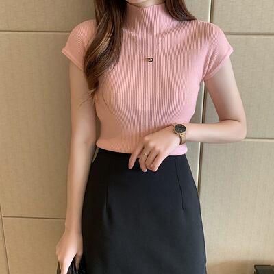 トップス ニットソー プルオーバー ミディアム丈 半袖 ハイネック ニット タイト インナー かわいい 大人可愛い きれいめ シンプル 上品 おしゃれ かっこいい レトロ こなれ感 個性的 主役級 存在感 抜け感 オールシーズン キュート クール ナチュラル ベーシック 無地 レディース 女性用 ママ OL 通勤 オフィス ビジネス 学生 通学 デート お出かけ お泊まり イベント 女子会 休日 カフェ ショッピング 旅行 アウトドア レストラン コンパ レイヤード 重ね着 普段使い 着回し ワンサイズ
