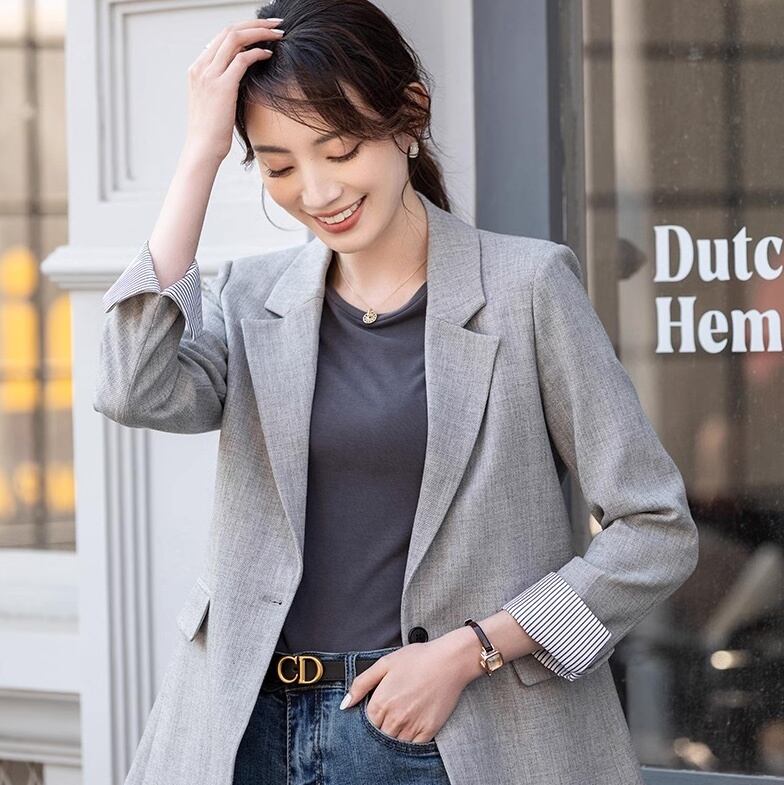 一枚で華やかに、何にでも合わせやすいテーラードジャケット!シンプルながらこなれ感あるカジュアルスタイルをお求めの方にピッタリ。メンズライクなマニッシュさとクールな雰囲気が魅力のフォーマルな抜け感を演出。春から秋まで幅広く活躍し、入学式や卒業式、OLの通勤スタイルにも最適。重ね着やレイヤードも楽ちんで、トレンド感を取り入れた着こなしでおしゃれ度アップ。シックな大人カラーのグレーとアプリコットが、どんなシーンでも上品な印象を与えます。Sから2XLまでのサイズ展開で、あらゆる体型に対応。オン・オフどちらでも活躍する定番アイテムです。