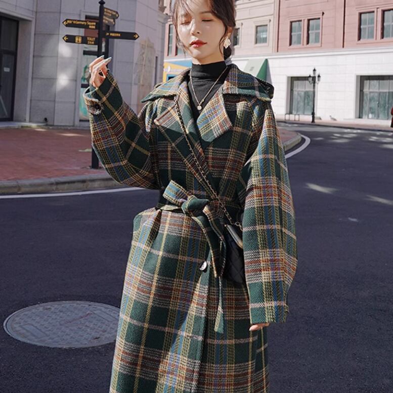 ジャケット コート アウター 上着 レディース ウール 羽織 前開き ウールロングコート ロングコート ロング 長袖 萌袖 襟付き ワイド オーバーサイズ ベルト ウエストマーク ふわふわ ふっくら ボタン ヴィンテージ かわいい 大人可愛い きれいめ シンプル カジュアル 上品 おしゃれ かっこいい レトロ アジアン こなれ感 ラフ ルーズ 個性的 クール エレガント モダン 主役級 存在感 とろみ感 抜け感 ラブリー キュート 都会的 ベーシック チェック 秋 お出かけ 暖かい 体型カバー ゆったり