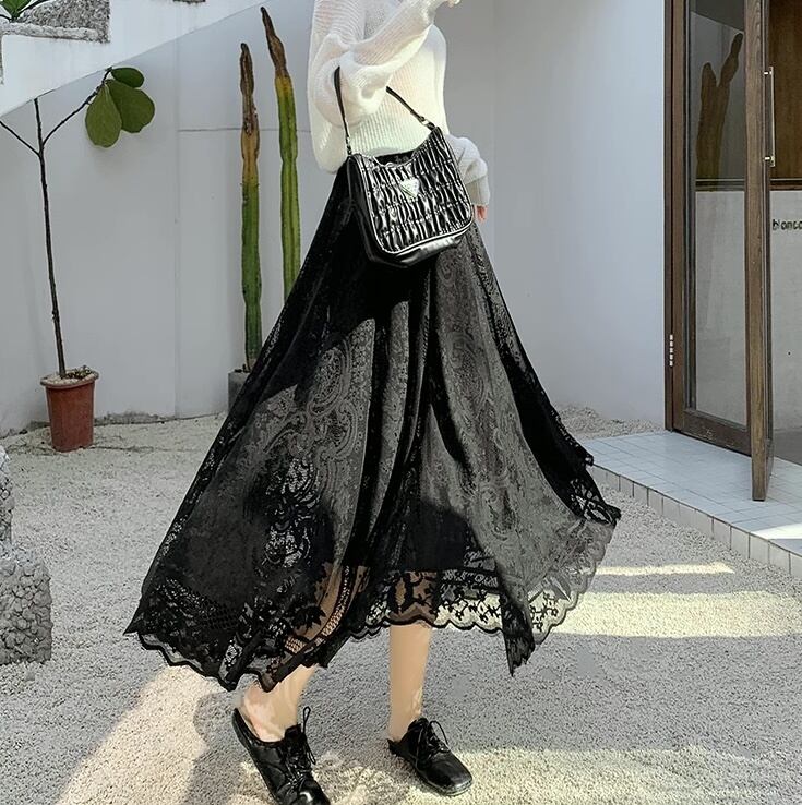 スカート ボトムス レディース カラースカート フレアスカート ロングスカート レーススカート フレア Aライン フェミニン レース 刺繍 透け感 シースルー かわいい 大人可愛い きれいめ おしゃれ ガーリー 抜け感 ラブリー キュート ロリータ プリンセス ロマンティック 総柄 春 夏 デート お出かけ パーティー イベント 女子会 休日 ショッピング コンサート ライブ 重ね着 お揃い 双子 コーデ トレンド 流行 インスタ映え フリーサイズ 白 ホワイト 黒 ブラック 紫 アプリコット パープル