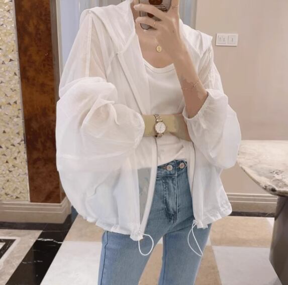 日差しを遮る日よけ効果を持つ、薄手のジャケットです。