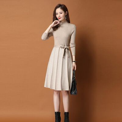 ワンピース ミディアム丈ワンピース 長袖 ハイネック 切り替えデザイン ウエストリボン プリーツスカート かわいい 大人可愛い きれいめ シンプル カジュアル 上品 おしゃれ かっこいい 大人女子 こなれ感 個性的 ラフ 主役級 存在感 キュート ナチュラル ベーシック ガーリー 無地 春 秋 冬 レディース 女性用 OL 通勤 学生 通学 デート お出かけ お泊まり イベント 女子会 休日 カフェ ショッピング 旅行 リゾート コンパ レストラン 重ね着 普段使い 着回し 脚長 M L XL 2XL