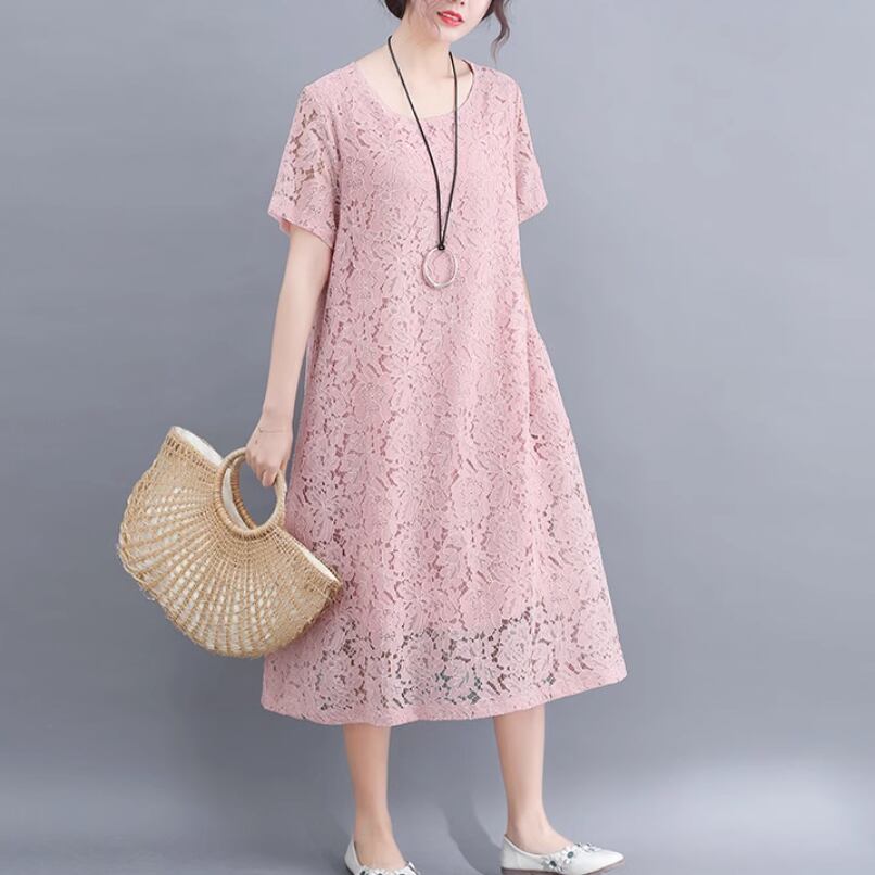 スカート ワンピース プルオーバー ドレス レディース シャツワンピ ロングスカート レーススカート ミモレ 半袖 ラウンドネック 襟なし ノーカラー ワイド レース レースアップ 透け感 薄手 かわいい 大人可愛い きれいめ シンプル カジュアル 上品 おしゃれ レトロ アジアン こなれ感 ラフ ルーズ 個性的 エレガント 主役級 存在感 とろみ感 抜け感 ラブリー キュート ロマンティック ナチュラル 夏 デート お出かけ リゾート 休日 バカンス 楽ちん 体型カバー 普段使い 清楚 ゆったり ゆる