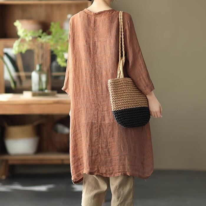 トップス カーディガン レディース 羽織 ロング 7分袖 Vネック Aライン 前開き ボタン リネン 綿 コットン 麻 大人可愛い シンプル カジュアル おしゃれ かっこいい レトロ アジアン エスニック エキゾチック こなれ感 ラフ ルーズ ベーシック アクティブ ナチュラル 無地 春 夏 秋 お出かけ リゾート 旅行 女子会 休日 ライブ フェス コーデ 楽ちん 普段使い 着回し トレンド 流行 インスタ映え 定番 L XL 大きいサイズ ゆったり ゆる 紫 茶色 ブラウン ブルー くすみ 大人カラー