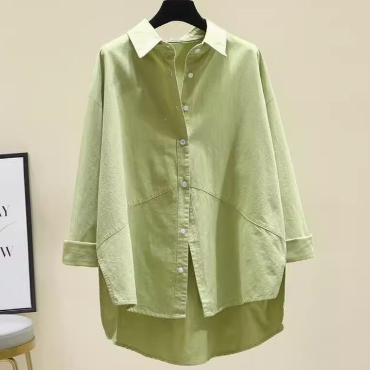 トップス シャツ ブラウス レディース 長袖 Vネック 襟付き フェミニン 前開き かわいい 大人可愛い シンプル カジュアル おしゃれ かっこいい ラフ メンズライク マニッシュ ルーズ ラブリー キュート ベーシック アクティブ 無地 春 秋 お出かけ 旅行 女子会 休日 重ね着 コーデ 楽ちん 普段使い 着回し レイヤード トレンド 流行 定番 M L XL 2XL 3XL 小さいサイズ 大きいサイズ ゆったり ゆる 白 ホワイト ピンク ブルー 緑 グリーン 春カラー キャメル
