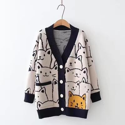 トップス ニット セーター カーディガン レディース 長袖 Vネック ストリート フェミニン 前開き かわいい 大人可愛い カジュアル おしゃれ かっこいい ラフ ガーリー 個性的 ラブリー キュート カレッジ風 学生風 アニマル柄 キャラクター 春 秋 冬 通学 お出かけ 女子会 休日 ショッピング カフェ 重ね着 コーデ 暖かい 防寒 普段使い 着回し レイヤード トレンド 流行 インスタ映え 定番 S M L XL 2XL 小さいサイズ 大きいサイズ 茶色 ブラウン ネイビー