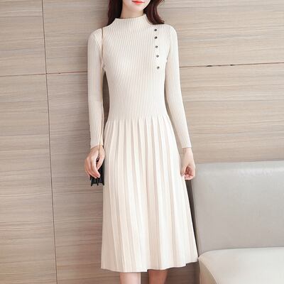 ワンピース ミディアム丈ワンピース ニットワンピース 長袖 ハイネック ミディアム丈 ウエストマーク プリーツスカート かわいい 大人可愛い きれいめ シンプル カジュアル 上品 おしゃれ かっこいい 大人女子 こなれ感 個性的 レトロ ラフ ルーズ 主役級 存在感 キュート ナチュラル ベーシック 無地 秋 冬 レディース 女性用 学生 通学 デート お出かけ お泊まり イベント 女子会 休日 カフェ ショッピング 旅行 リゾート コンパ レストラン 重ね着 普段使い 着回し 脚長 S M L XL