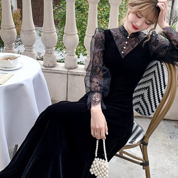 ドレス 衣装 ワンピース ロングワンピース イブニングドレス 二次会ドレス 演奏会ドレス ステージドレス ロング丈 長袖 パフスリーブ ハイネック ウエストマーク セミフレア シースルー かわいい 大人可愛い きれいめ シンプル 大人 上品 おしゃれ かっこいい レトロ こなれ感 個性的 クール モード系 エレガント キュート モダン 主役級 存在感 ゴージャス 華やか セクシー 無地 レディース 女性用 イベント リゾート ホテル レストラン ファッション コーデ スタイル スレンダー 脚長 美脚
