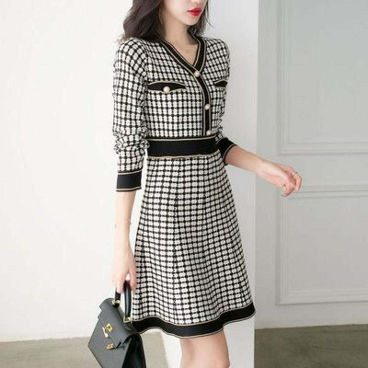ウエストマークで女性らしいシルエットを演出し、フレアスカートがふんわりとした可愛らしさをプラスしています。