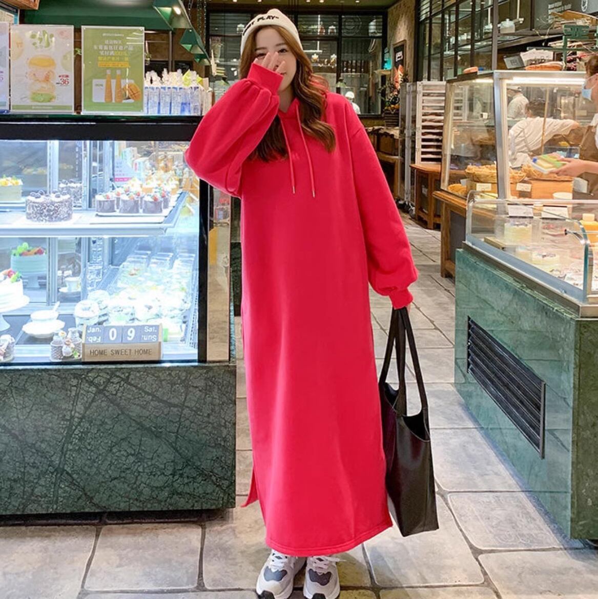 ワンピース プルオーバー パーカー レディース マキシ 長袖 フード ストリート フェミニン ポケット かわいい 大人可愛い きれいめ シンプル カジュアル おしゃれ こなれ感 ラフ ルーズ 抜け感 キュート カレッジ風 学生風 アクティブ ナチュラル 無地 バックプリント 春 秋 デート お出かけ 公園 女子会 休日 カフェ 重ね着 楽ちん 体型カバー 普段使い 着回し トレンド 流行 インスタ映え 定番 L XL 2XL 3XL 4XL ビッグ ゆったり ゆる 紫 ピンク レッド パープル