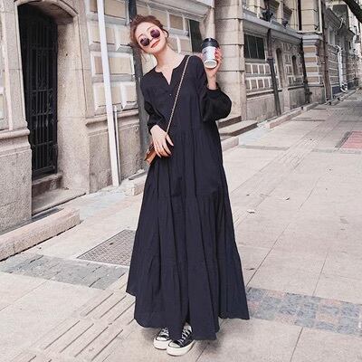 ワンピース レディース シャツワンピ フレア ティアード マキシ 長袖 スキッパー Aライン フェミニン かわいい 大人可愛い きれいめ シンプル カジュアル おしゃれ こなれ感 ラフ ルーズ 抜け感 キュート カレッジ風 学生風 ベーシック アメリカン プレッピー アクティブ ナチュラル 無地 春 秋 デート お出かけ 公園 女子会 休日 カフェ 重ね着 楽ちん 体型カバー 普段使い 着回し トレンド 流行 インスタ映え 定番 S M L XL 小さいサイズ 大きいサイズ ゆったり ゆる 黒 ブラック