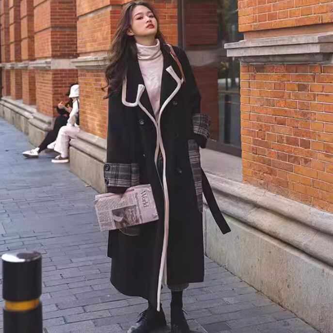 カラーマッチングデザインが特徴的なウールコート