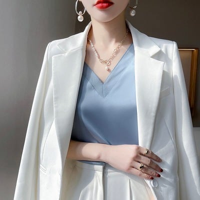 サテン素材のトップスは、かわいさと上品さを兼ね備えたアイテムです。