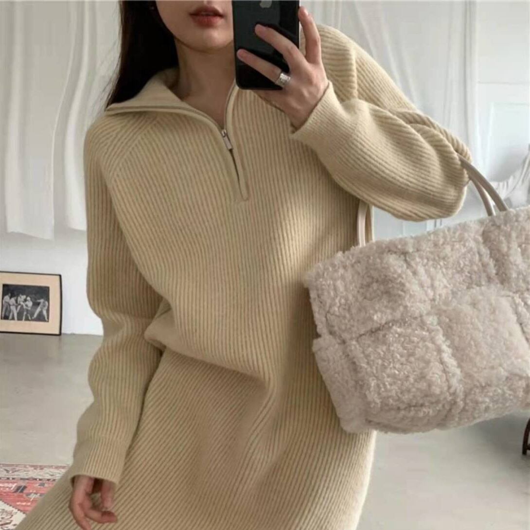 ワンピース ミモレ丈ワンピース ニットワンピース 長袖 襟付き ハイネック ハーフジップ ミモレ丈 ニット かわいい 大人可愛い きれいめ シンプル カジュアル 上品 おしゃれ かっこいい 大人女子 こなれ感 個性的 ラフ 主役級 存在感 キュート ナチュラル ベーシック クール 無地 秋 冬 レディース 女性用 ママ OL 通勤 学生 通学 デート お出かけ お泊まり イベント 女子会 休日 カフェ ショッピング 旅行 リゾート コンパ レストラン 重ね着 普段使い 着回し 脚長 S M L XL