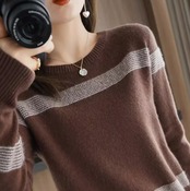 トレンド感満載!シーズンムードを一気に盛り上げる、大人可愛いニット登場。ラウンドネックが女性らしさを引き立て、上品なボーダーデザインがエレガントな雰囲気を醸し出します。マニッシュながらも可愛らしい印象で、デートや女子会にぴったり。おしゃれな重ね着コーデやレイヤードスタイルも楽ちんに決まるフリーサイズ仕様。ショッピングから旅行まで、あらゆるシーンで活躍する、秋冬のマストアイテム。大人カラーのブラック、ブラウン、グレーは、シックでナチュラルなスタイリングにぴったり。究極の着回しアイテムで、あなたのスタイルを一新しませんか?