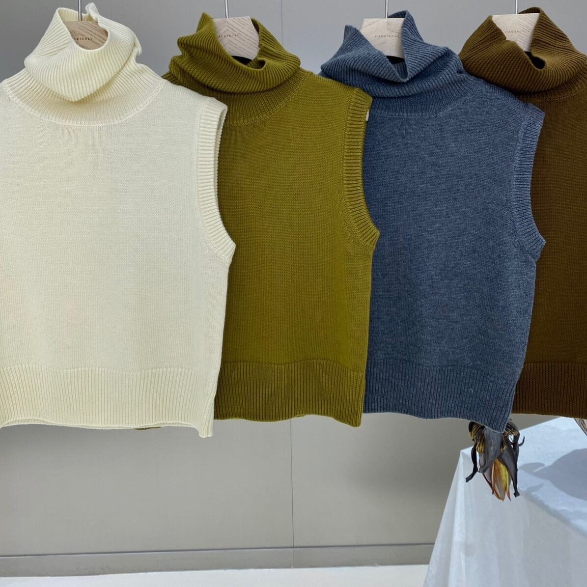 トップス ニットソー プルオーバー ショート丈 袖なし タートルネック ニット かわいい 大人可愛い きれいめ シンプル 上品 おしゃれ かっこいい レトロ こなれ感 個性的 主役級 レトロ ラフ ルーズ 存在感 抜け感 オールシーズン キュート メンズライク ナチュラル ベーシック 無地 レディース 女性用 ママ OL 通勤 オフィス 学生 通学 デート お出かけ お泊まり イベント 女子会 休日 カフェ ショッピング 旅行 アウトドア レストラン コンパ 重ね着 普段使い 着回し ワンサイズ