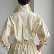 襟付きのデザインとウエストマークが女性らしさを引き立て、セミフレアのシルエットが上品さを演出します。