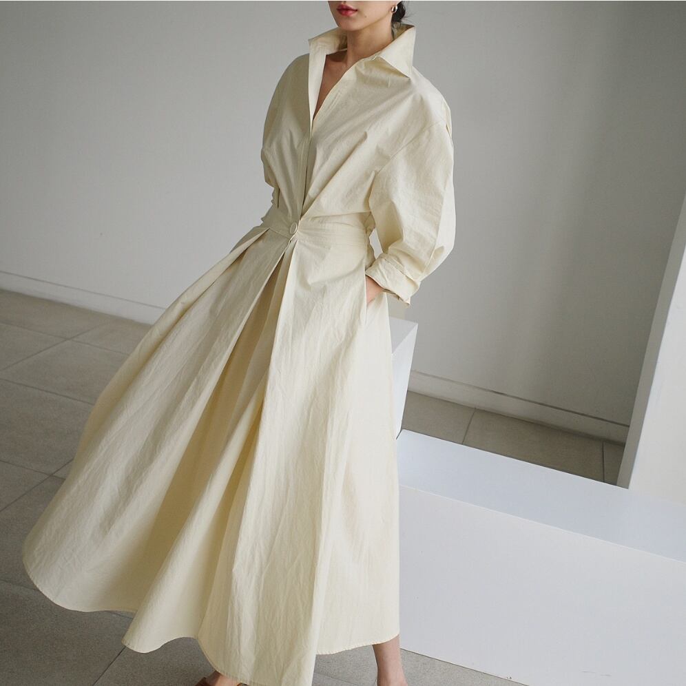 ワンピース ロングワンピース シャツワンピース 長袖 襟付き ウエストマーク セミフレア かわいい 大人可愛い きれいめ シンプル カジュアル 上品 おしゃれ かっこいい 大人女子 こなれ感 個性的 レトロ 主役級 存在感 キュート エレガント クール ベーシック ナチュラル 無地 春 秋 レディース 女性用 OL 通勤 学生 通学 デート お出かけ お泊まり イベント 女子会 休日 カフェ ショッピング 旅行 リゾート コンパ レストラン パーティー 重ね着 普段使い 着回し 脚長 S M L XL