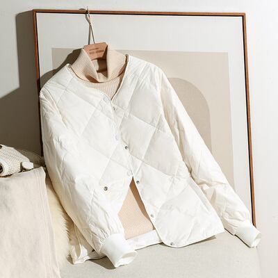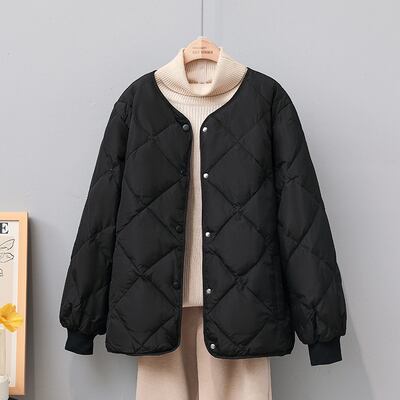 アウター ダウンジャケット キルティングジャケット ミディアム丈 長袖 ラウンドネック 前開き ボタン ポケット かわいい 大人可愛い きれいめ シンプル 上品 おしゃれ かっこいい レトロ こなれ感 個性的 主役級 存在感 抜け感 冬 メンズライク メンズライク ナチュラル ベーシック クール 無地 レディース 女性用 ママ マタニティ OL 通勤 学生 通学 デート お出かけ お泊まり イベント 女子会 休日 カフェ ショッピング 旅行 アウトドア レストラン コンパ 普段使い 着回し S M L