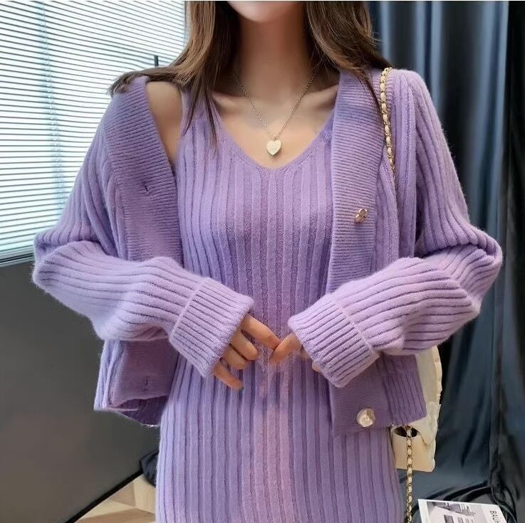 トップス ワンピース ニット カーディガン セットアップ アンサンブル レディース ロング 袖なし ノースリーブ 長袖 Vネック フェミニン 前開き かわいい 大人可愛い きれいめ シンプル 上品 おしゃれ こなれ感 ガーリー ラブリー キュート ベーシック ロマンティック ナチュラル 無地 秋 冬 デート お出かけ イベント 休日 カフェ 重ね着 普段使い 着回し レイヤード トレンド 流行 インスタ映え 定番 S M L XL 2XL 小さいサイズ 大きいサイズ 紫 黄色 イエロー ピンク パープル