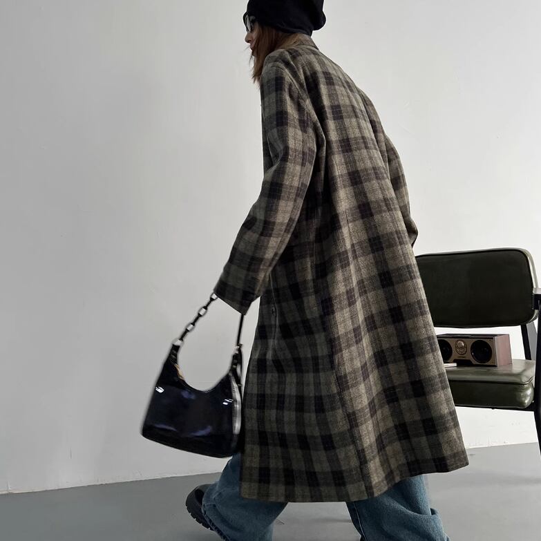 .オーバーサイズのチェック柄ウールコート