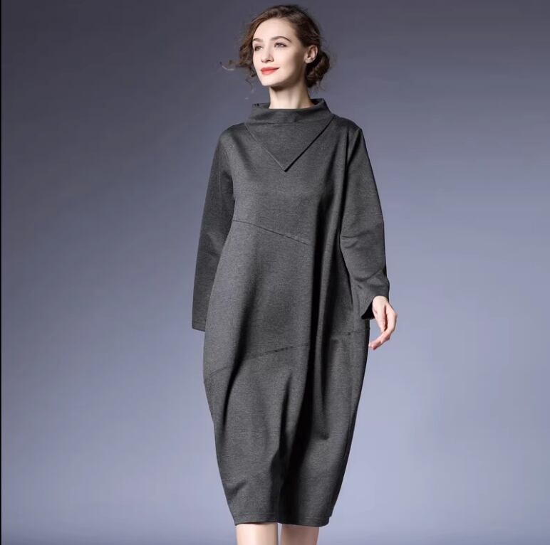 ワンピース プルオーバー レディース 膝下 丈長 長袖 ハイネック ワイド きれいめ シンプル カジュアル 上品 おしゃれ かっこいい こなれ感 ラフ 個性的 クール モード系 エレガント モダン 主役級 存在感 抜け感 都会的 ベーシック 無地 春 秋 デート お出かけ 女子会 休日 ショッピング カフェ コーデ 楽ちん 体型カバー 普段使い 着回し モテ 清楚 トレンド 流行 インスタ映え 定番 L XL 2XL 大きいサイズ ビッグ ゆったり ゆる 黒 ブラック ベーシックカラー 大人カラー