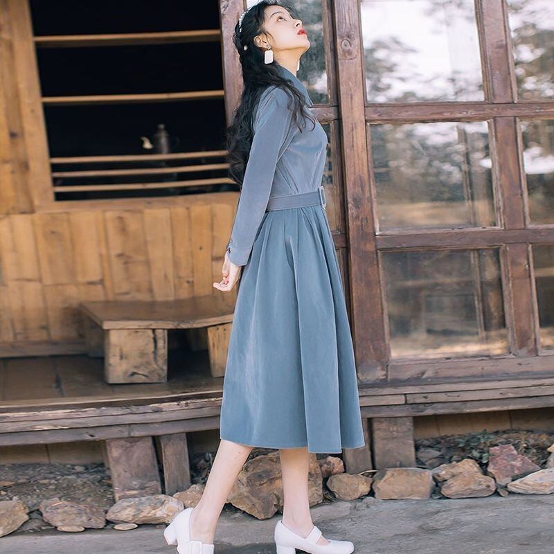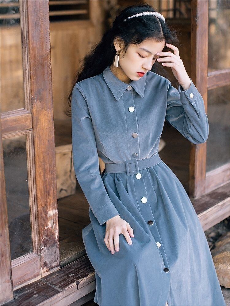 ワンピース レディース 前開き 膝下 丈長 長袖 襟付き スタンドカラー Aライン ベルト ウエストマーク コーデュロイ 大人可愛い きれいめ シンプル カジュアル 上品 おしゃれ こなれ感 ラフ 個性的 クール モード系 エレガント モダン 主役級 存在感 かっちり 都会的 ベーシック 無地 秋 冬 デート お出かけ 女子会 休日 ショッピング カフェ コーデ 楽ちん 普段使い 着回し モテ 清楚 トレンド 流行 インスタ映え 定番 S M L XL ブラック ブルー ベーシックカラー 大人カラー