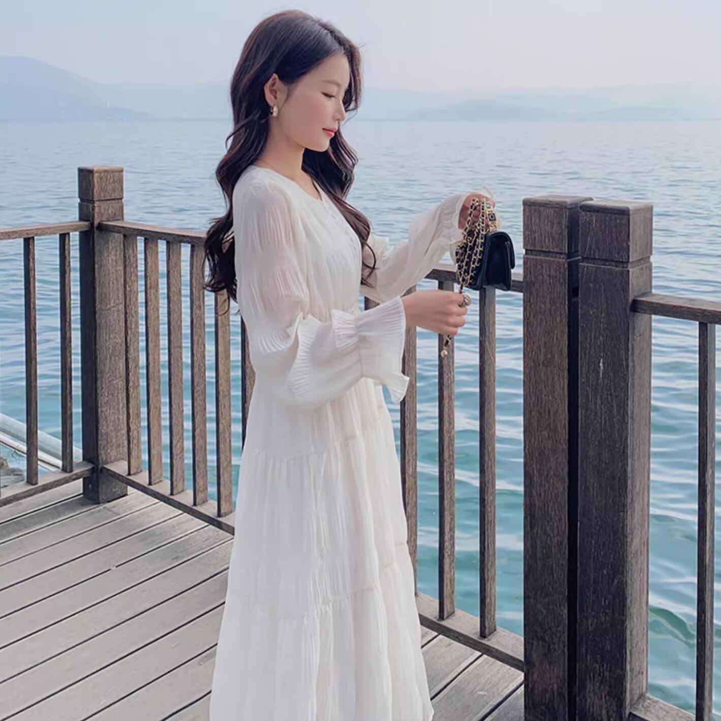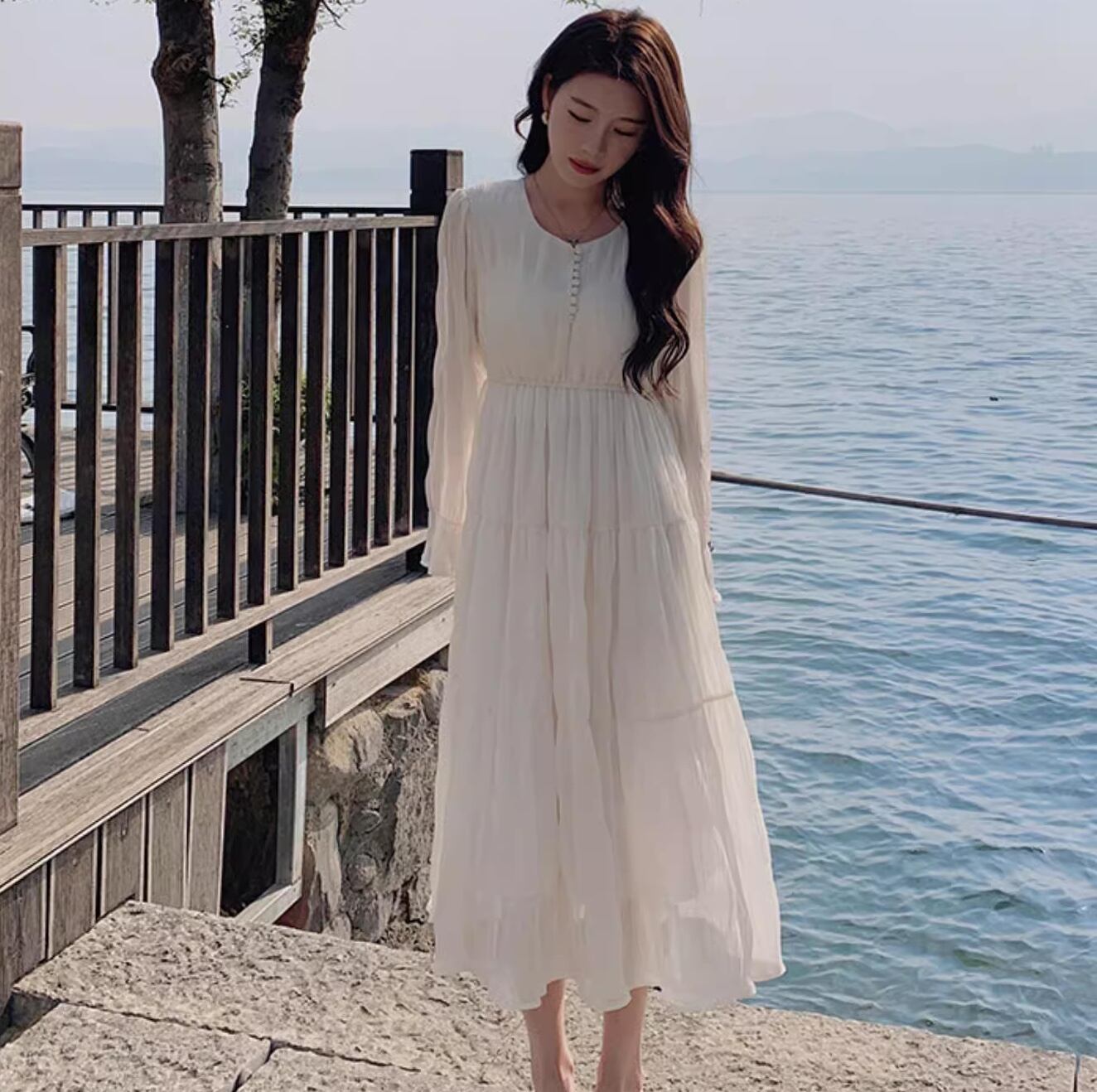 ワンピース レディース ロング マキシ 長袖 ラウンドネック フレア Aライン ティアード ウエストマーク ハイウエスト 透け感 かわいい 大人可愛い きれいめ 大人 上品 おしゃれ こなれ感 ラブリー キュート ガーリー エレガント モダン 主役級 存在感 フォーマル 抜け感 フェミニン ベーシック 無地 春 夏 秋 お出かけ 休日 パーティー イベント リゾート 旅行 ガーデン 着回し コーデ モテ トレンド 流行 インスタ映え 清楚 S M L XL 小さいサイズ 大きいサイズ 白 ホワイト