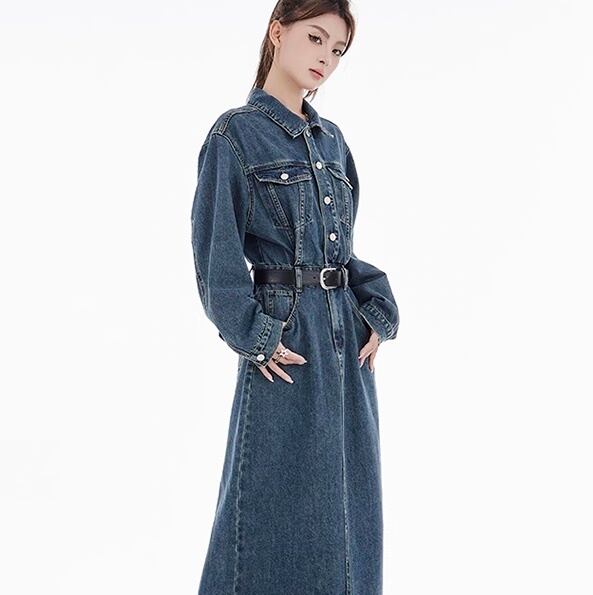 贅沢なフェミニンさと洗練されたシンプルさが交わり、今季のトレンドを余すことなく詰め込んだデニムワンピ。Vネックと襟付きが女性らしい表情を引き立て、ウエストマークで美しいシルエットを演出。バックスリットがさりげないエレガンスをプラスし、ボーイッシュからガーリーまで自在にアレンジ可能。薄手で着心地抜群、春秋の長い季節を彩ります。ショッピングやカフェ、デートなど、様々なシーンで輝く一枚。SからXLまでの豊富なサイズ展開で、体型も気にせず自信を持って着こなせます。ブルーデニムの清涼感が心地よい、大人の女性にぴったりのベーシックなアメリカンカジュアルをお届けします。