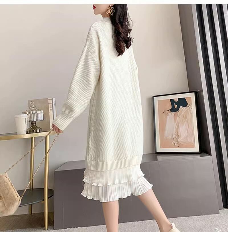 華やかな季節にピッタリのニットワンピース。ラウンドネックに加え、フリルや切り替えデザインがガーリーで可愛らしい印象を与えます。大人可愛いスタイルを演出するロング丈と長袖が、秋冬のシーズンにぴったり。シンプルながらもオシャレ心をくすぐるドッキングやケーブルニットのディテールが特徴で、重ね着やレイヤードスタイルにも最適です。白、黒、ピンクなどのベーシックカラーは、デートやお出かけ、パーティーからイベント、旅行まで様々なシーンで活躍。Mから3XLまでのサイズ展開で、豊富なサイズバリエーションも魅力の一つです。トレンド感漂うデザインで、普段使いから特別な日まで、幅広い着こなしを楽しめる一枚です。