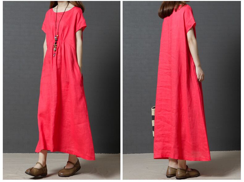 ワンピース プルオーバー レディース ロング 半袖 ラウンドネック 襟なし ワイド Aライン ポケット 薄手 リネン 大人可愛い シンプル カジュアル おしゃれ レトロ アジアン こなれ感 ラフ 個性的 クール モード系 エレガント モダン 主役級 存在感 抜け感 都会的 ベーシック ナチュラル 無地 夏 デート お出かけ 公園 休日 ショッピング カフェ コーデ 楽ちん 体型カバー モテ 清楚 トレンド 流行 インスタ映え 定番 M L XL 2XL ゆったり レッド ネイビー ベーシックカラー
