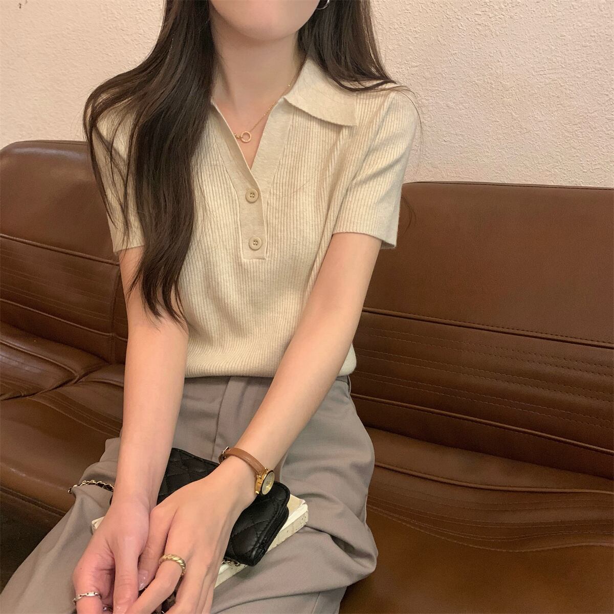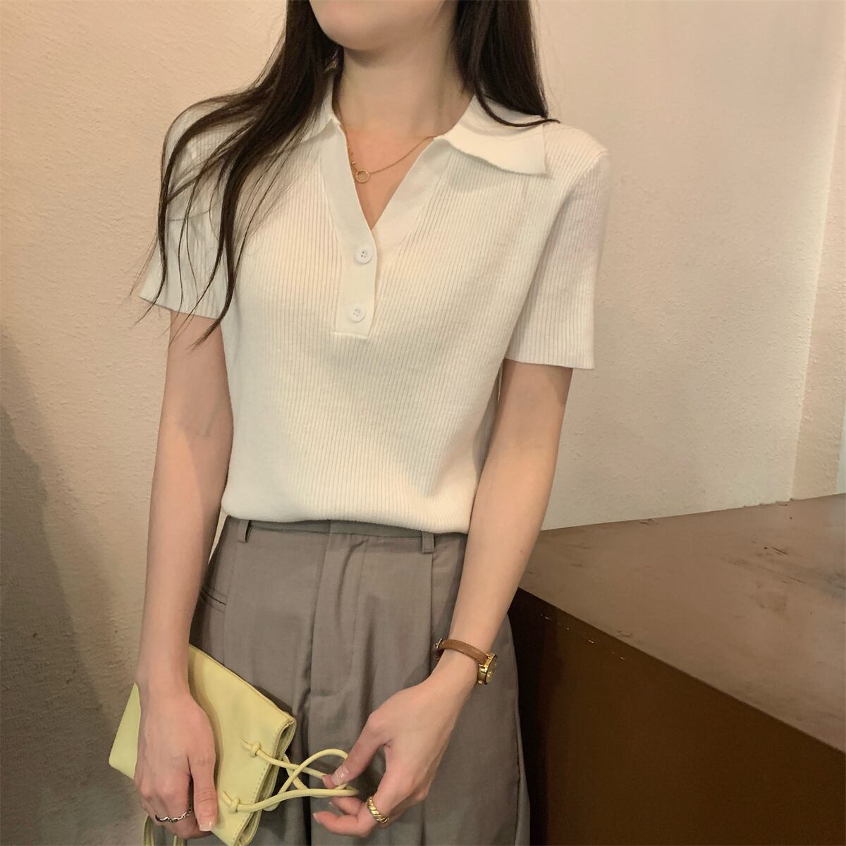 レディース トップス 半袖 ポロカラー かわいい 大人可愛い きれいめ シンプル カジュアル かっこいい 無地 夏 OL 学生 お出かけ 韓国 楽ちん 普段使い 白 ホワイト 黒 ブラック ベージュ アプリコット