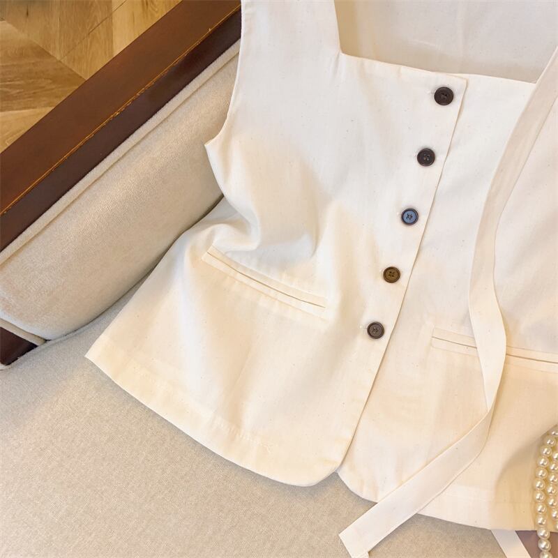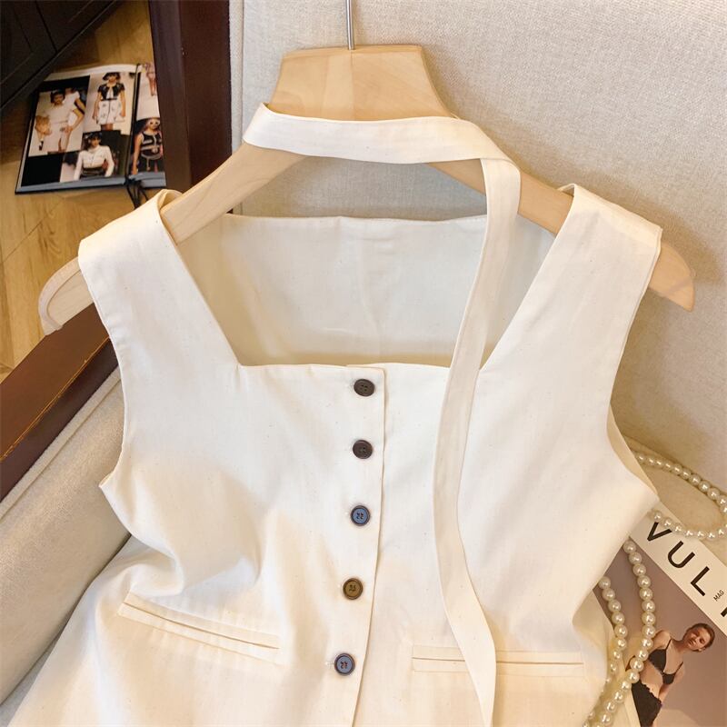 涼しげな印象を与えるノースリーブベスト。シンプルで上品なスクエアネックが美しいデザインです。ポケットとボタンがアクセントになり、かわいらしさと大人可愛さを兼ね備えた一枚。夏の暑い日にぴったりな無地のカラーバリエーションで、コーディネートに合わせやすいのも魅力の一つ。S、M、Lのサイズ展開で、自分にぴったりのサイズをお選びいただけます。おしゃれな夏スタイルを演出するアイテムとして、ぜひご検討ください。
