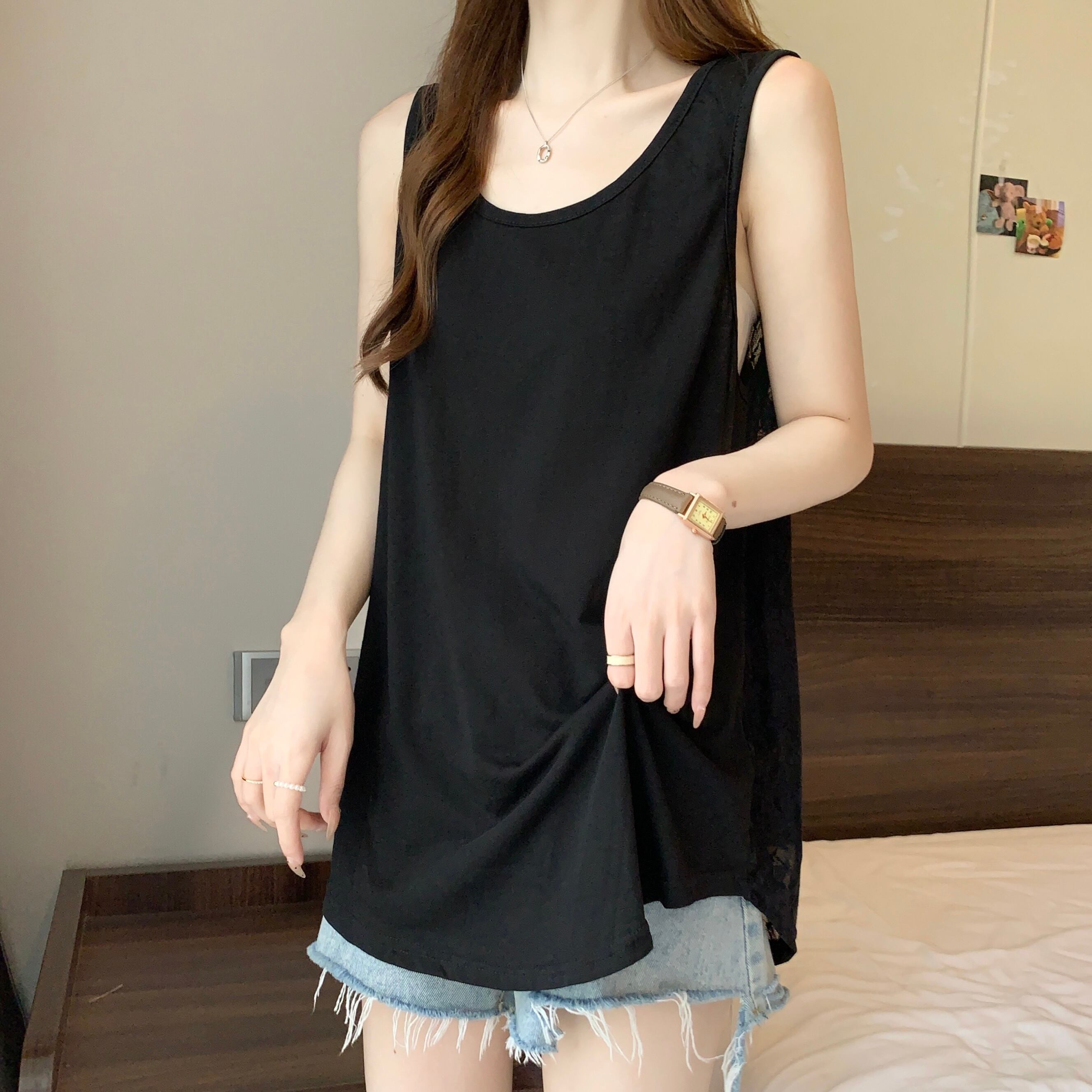 レディース トップス カットソー 袖なし ノースリーブ Uネック 背中開き レース 透け感 薄手 かわいい 大人可愛い シンプル おしゃれ ラフ 無地 夏 白 ホワイト 黒 ブラック