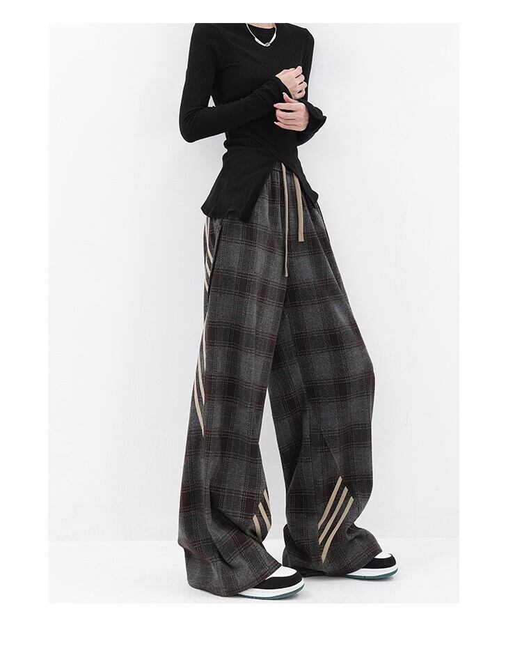 レディース パンツ ボトムス ワイドパンツ イージーパンツ フルレングス ワイド ポケット かわいい 大人可愛い カジュアル 上品 おしゃれ かっこいい チェック ストライプ グレー オレンジ