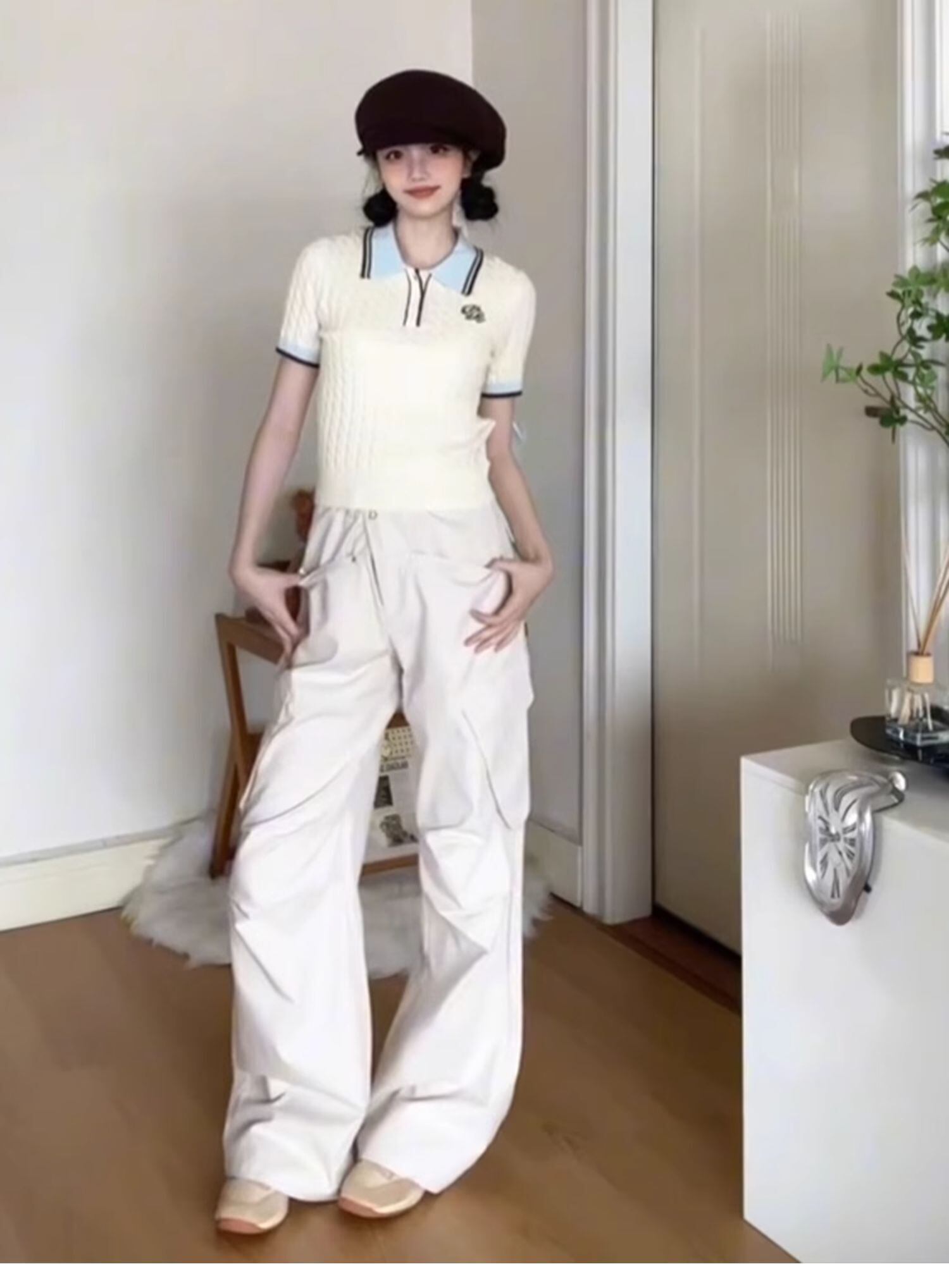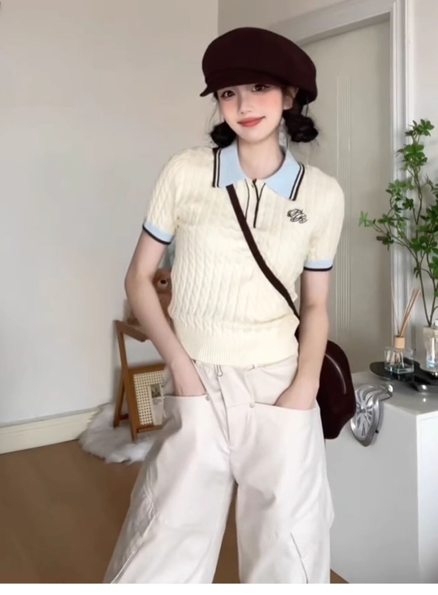 このポロニットは、大人可愛いデザインが魅力的な一枚です。ポロカラーや切り替えデザイン、カジュアルでおしゃれなスリムなシルエットが特徴で、さらにワンポイントの刺繍やケーブル編みが可愛らしさをプラスしています。夏にぴったりの半袖仕様で、ホワイトカラーは清潔感と爽やかさを演出。着心地も快適で、暑い季節でも涼しい着心地を実現しています。大人カジュアルスタイルに馴染む一枚です。是非、おしゃれを楽しむトップスとして、ご活用ください。