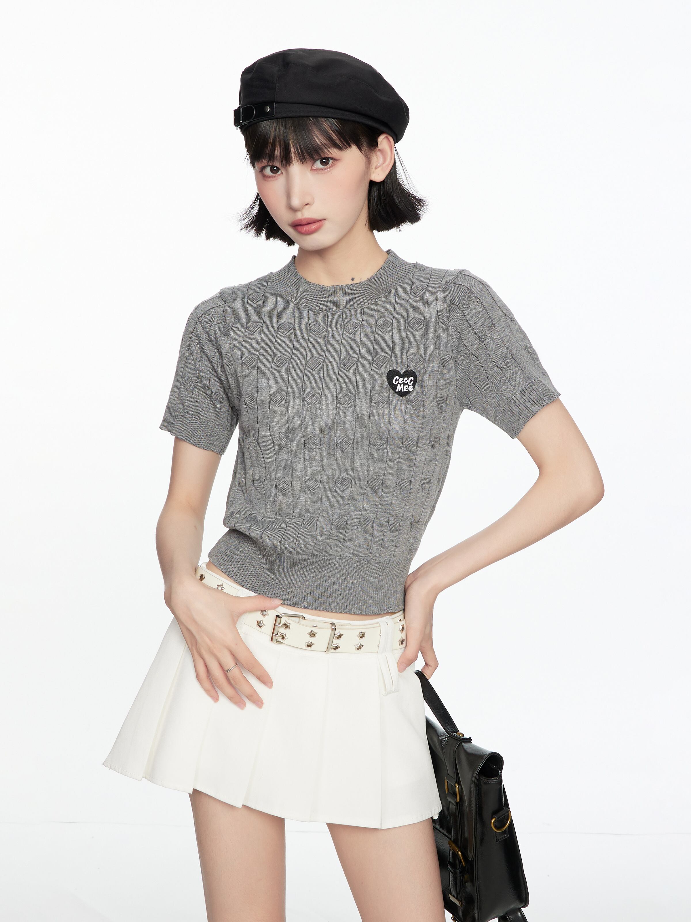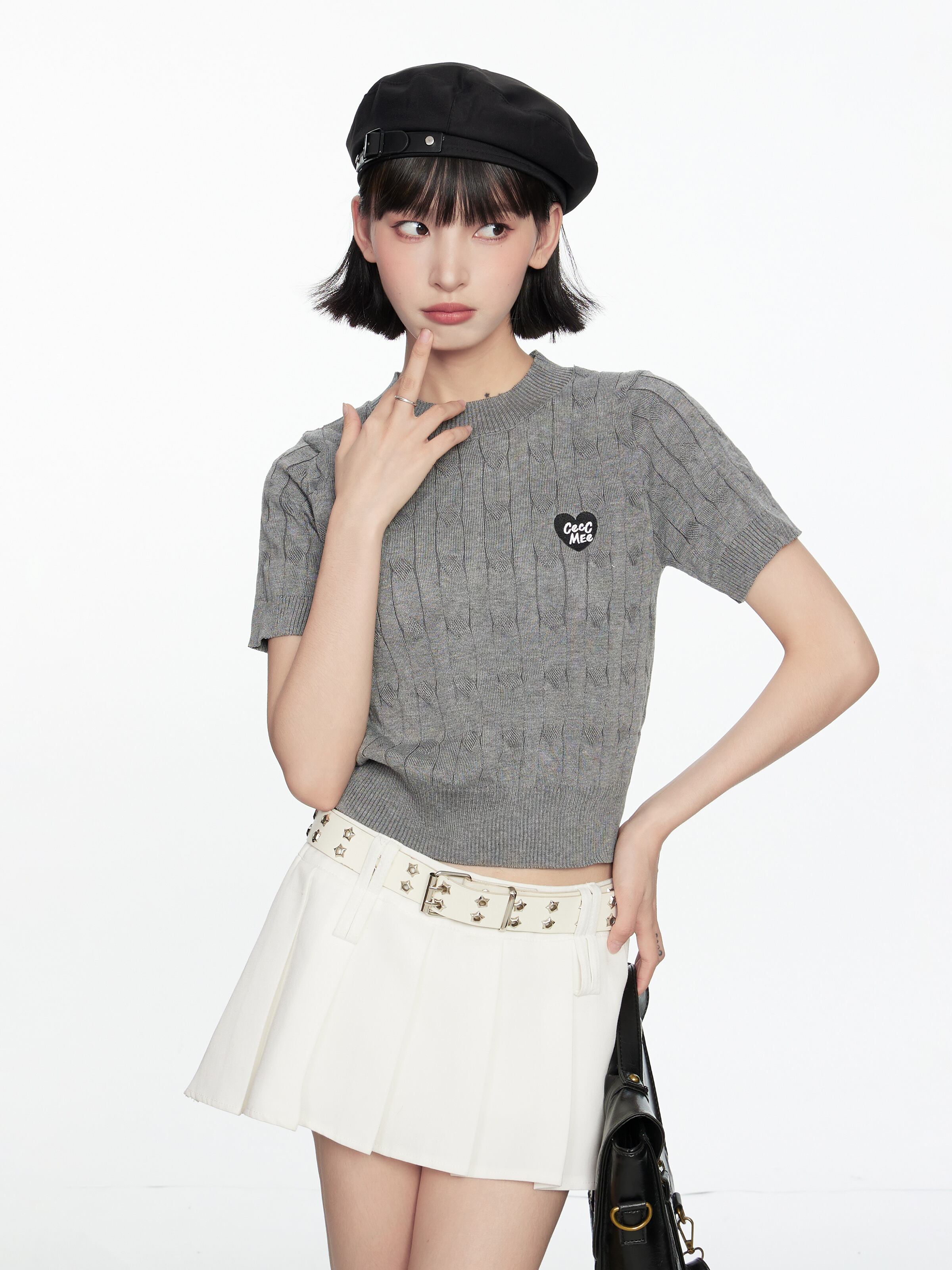 柔らかな素材感とモックネックが魅力のレディースカットソー。カジュアルなデザインながら、一枚でおしゃれに決まるアイテムとして大活躍間違いなし!ケーブルニットが一部に施されたデザインは、シンプルながらもワンポイント刺繍が可愛らしさをプラスしています。夏にぴったりな半袖仕様で、S、M、Lの3サイズ展開でホワイトとグレーのカラーバリエーションもご用意しています。