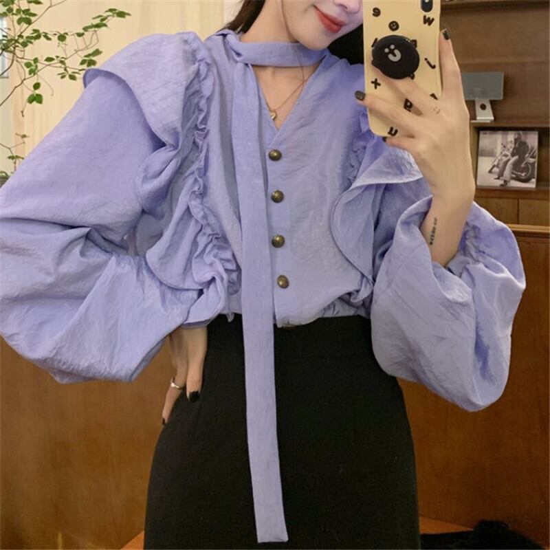 レディース トップス シャツ ブラウス ボリューム袖 Vネック 大人可愛い きれいめ 上品 おしゃれ 主役級 都会的 無地 春 夏 秋 オフィス 通勤 通学 お出かけ 女子会