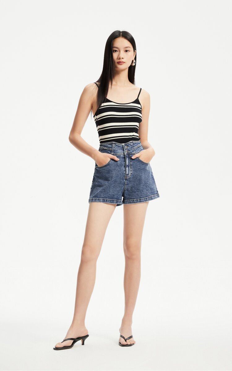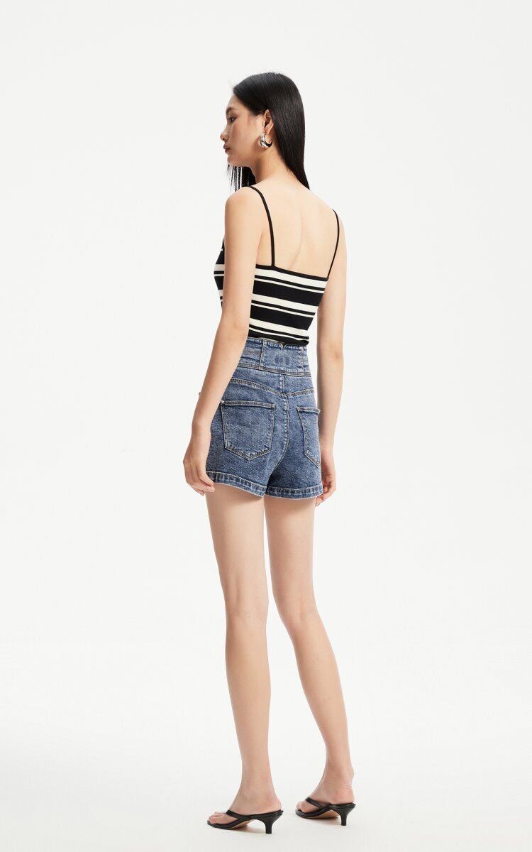 シンプルで着こなしやすいレディースデニムショートパンツです。膝上丈のアメカジデザインで、カジュアルな装いにぴったり。ホワイト、ブラック、ネイビーの3色展開で、お好みのカラーをお選びいただけます。