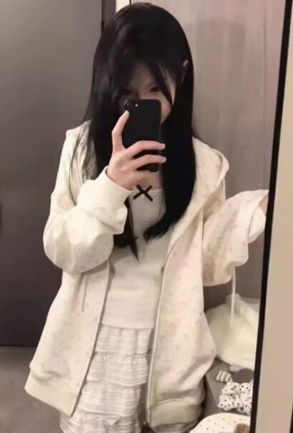 レディース パーカー 前開き かわいい きれいめ 学生風 花柄 春 秋 冬 旅行 休日 S M L XL 2XL 白
