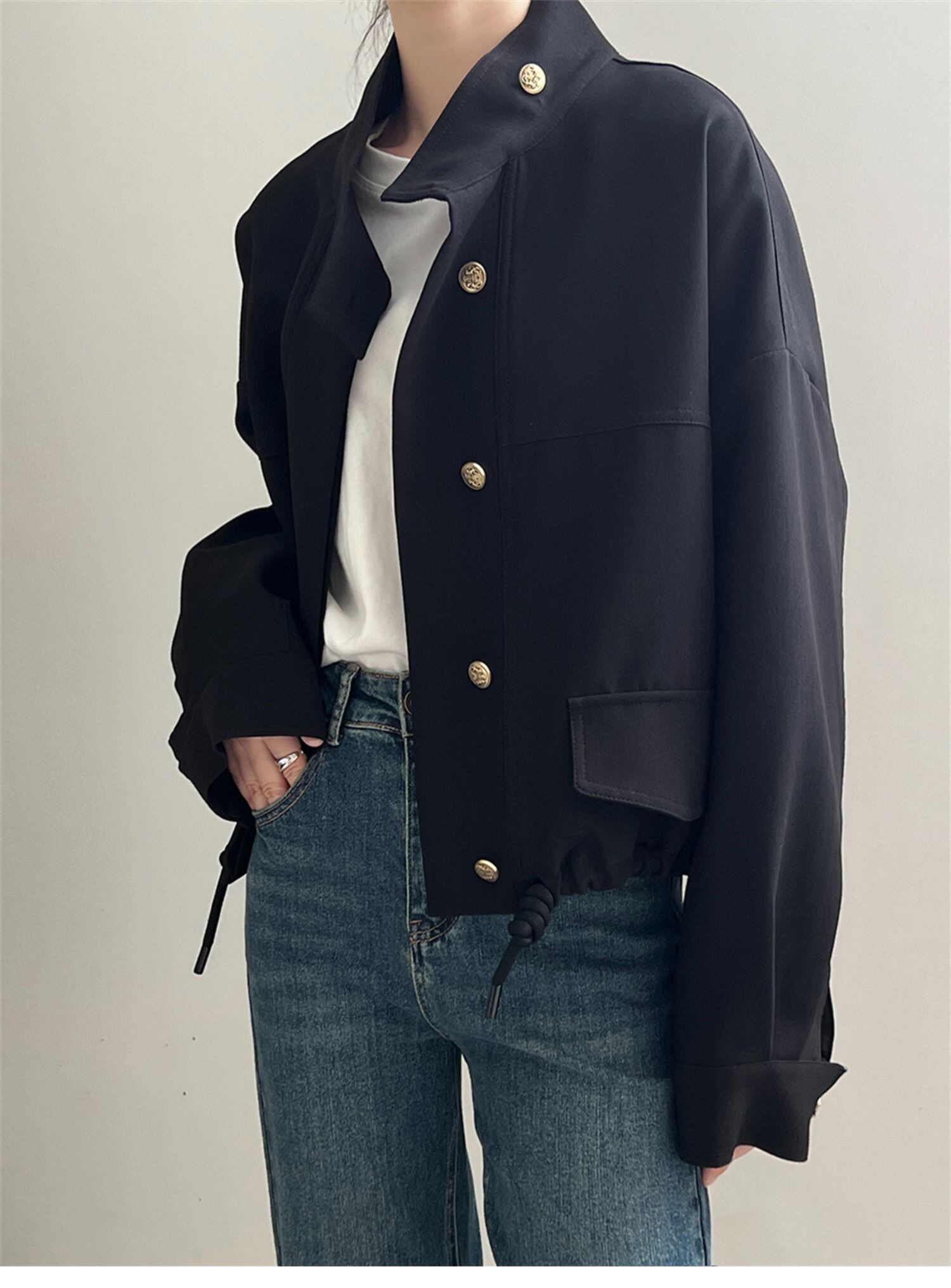 レディース トップス ジャケット ブルゾン ボンバージャケット ショート アメカジ ドローコード かわいい カジュアル おしゃれ かっこいい こなれ感 アメリカン 秋 冬 ブラック カーキ