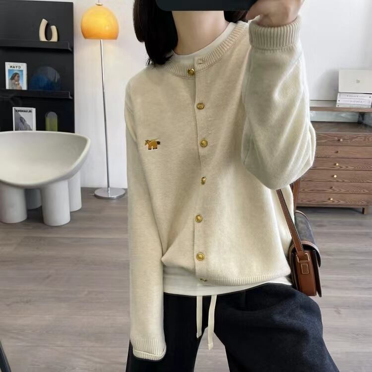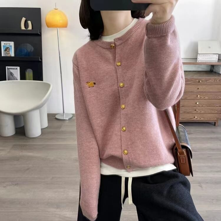 レディース トップス カーディガン 羽織 前開き 長袖 ふわふわ ボタン ワンポイント ニット かわいい 大人可愛い シンプル おしゃれ 無地 ロゴ ホワイト グレー ピンク レッド ネイビー