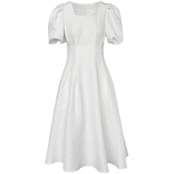 ボリューム感のあるパフスリーブやスクエアネック、Aラインのシルエットが女性らしさを引き立て、ハイウエストのタック入りでスタイルアップも叶います。無地でシンプルなデザインなので、デートやお出かけ、レストランなど様々なシーンに対応できます。清楚で大人可愛い印象を演出し、体型のカバーも叶える一着です。エレガントでお洒落なスタイルを目指すすべての女性に、是非お試しいただきたい逸品です。