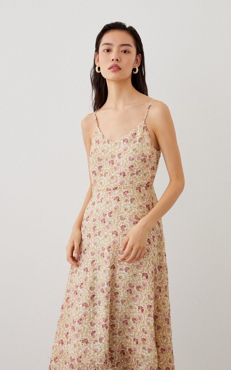 レディース ワンピース 膝丈 キャミソール Aライン 薄手 かわいい 大人可愛い きれいめ シンプル 上品 おしゃれ こなれ感 総柄 夏 XS S M L ピンク ブルー グリーン