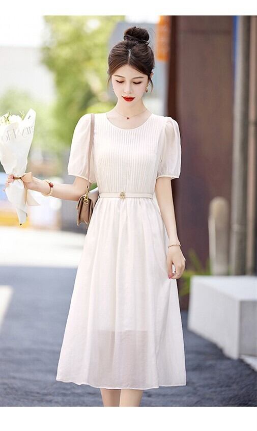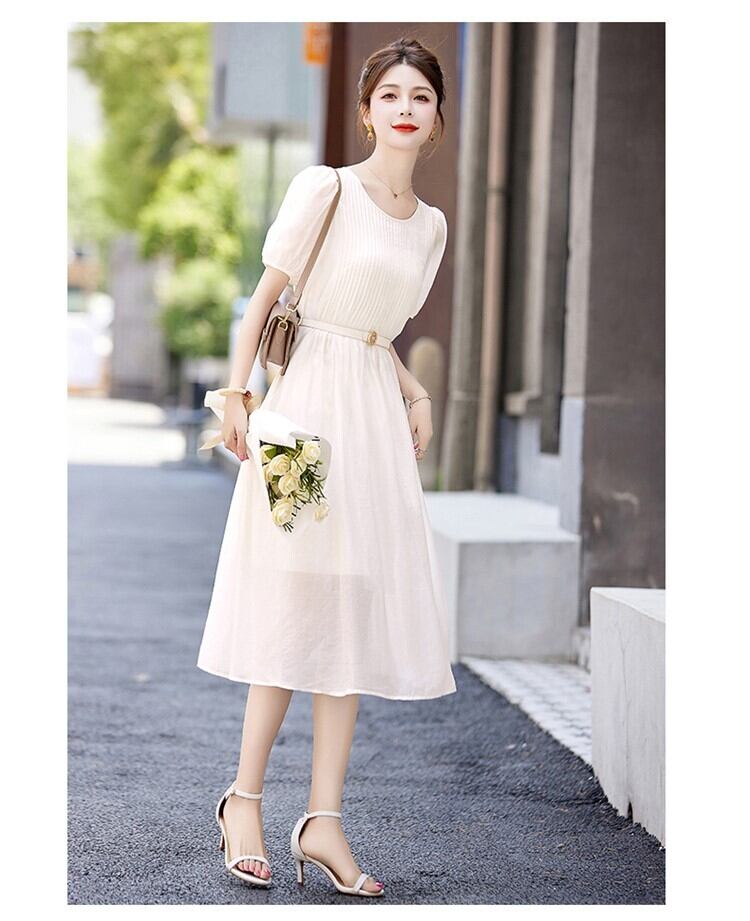 レディース ワンピース 膝丈 半袖 Aライン ふわふわ ハイウエスト 薄手 かわいい 大人可愛い きれいめ 上品 おしゃれ 主役級 存在感 無地 夏 M L XL 2XL 白 ホワイト