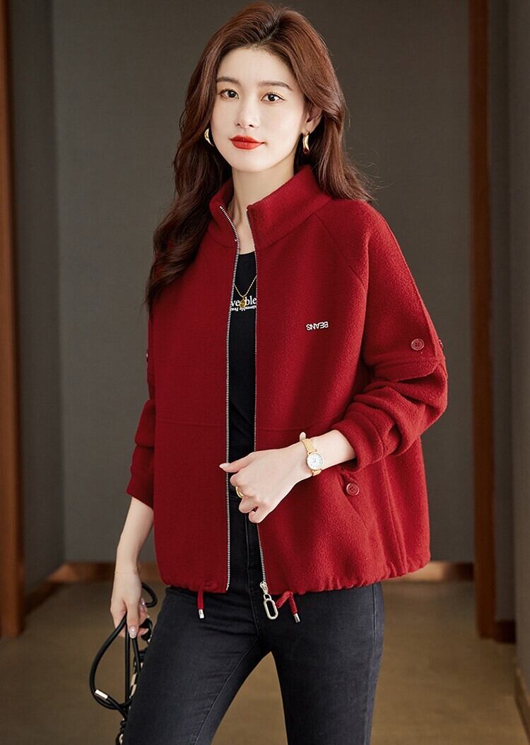 レディース トップス カーディガン アウター 羽織 前開き ジップ 長袖 スタンドカラー かわいい 大人可愛い シンプル カジュアル おしゃれ 無地 秋 冬 ホワイト ブラック ブラウン レッド