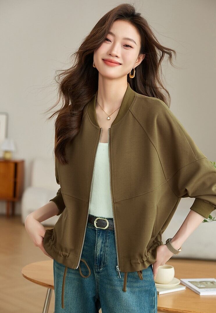 レディース トップス カーディガン 羽織 前開き ジップ 長袖 ドローコード ファスナー ポケット 大人可愛い シンプル おしゃれ かっこいい 秋 冬 M L XL 2XL ブラック グレー カーキ