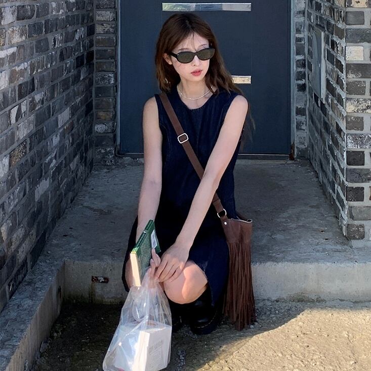 ラウンドネックのワンピースは、ミニ丈でノースリーブのデザインがさわやかな着こなしを叶えます。Aラインのシルエットが女性らしさを引き立て、高めのウエストラインでスタイルアップ効果も抜群。プリーツが施されたデニム素材は、シンプルでありながらも洗練されたカジュアルスタイルを演出してくれます。通学やデートはもちろん、お出かけや旅行、ショッピングにもぴったりな一着です。