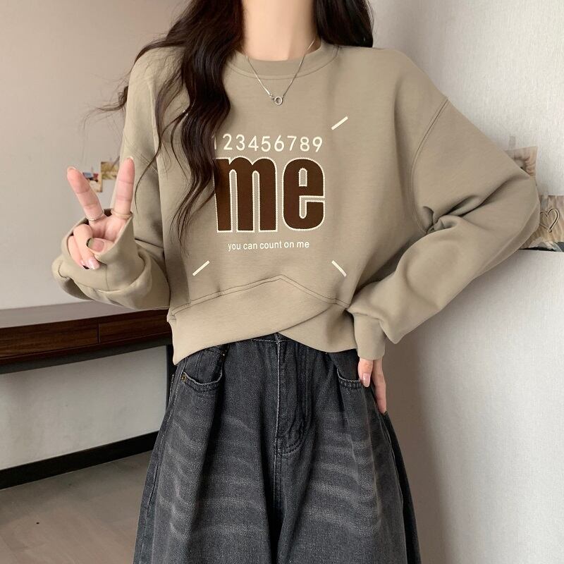 レディース トップス トレーナー スウェット ショート 萌袖 ラウンドネック スリム 細身 カジュアル おしゃれ レトロ ラフ 個性的 カレッジ風 アメリカン 春 秋 お出かけ 休日 韓国 楽ちん 体型カバー 普段使い 着回し ゆったり ゆる